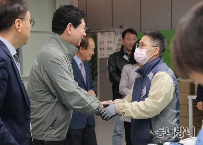동네방네 김형규 기자 | 이상일 용인특례시장은 10일 오전 처인구 백암면에 있는 장애인직업재활시설인 성만원을 찾아 시설 관계자와 장애인 근로자들을 격려했다.