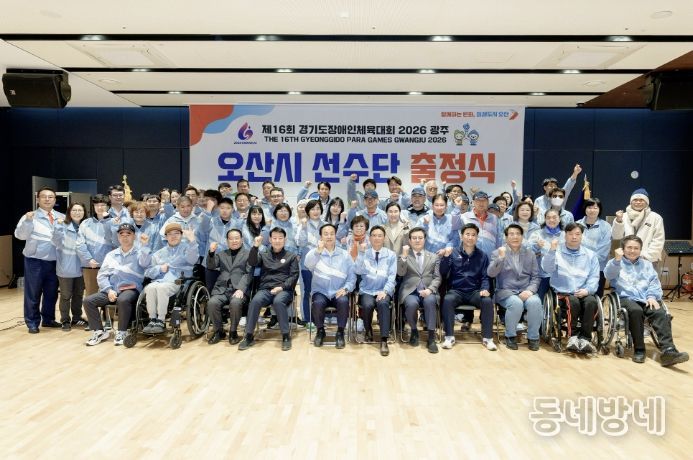 동네방네 김형규 기자 | 오산시장애인체육회는 ‘제16회 경기도장애인체육대회 2026 광주’에 참가하는 오산시 선수단 출정식을 지난 10일 오산오색문화체육센터에서 개최했다고 밝혔다.