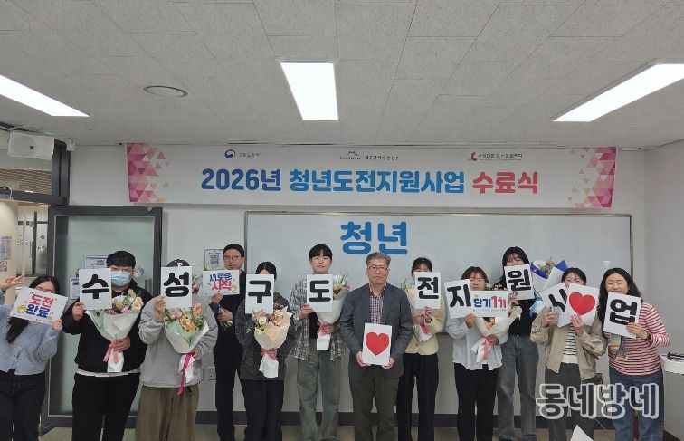 동네방네 김형규 기자 | 대구 수성구는 지난 13일 ‘2026년 청년도전 지원사업 단기 프로그램 1기 수료식’을 개최했다고 밝혔다.