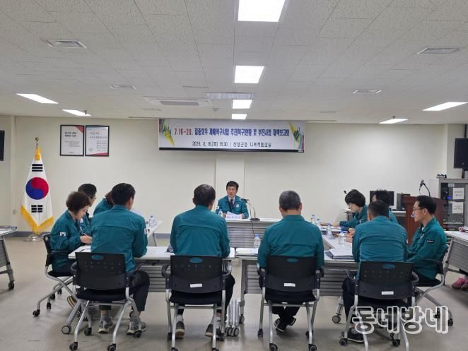 성흥택 부군수 주재로 열린 이번 보고회는 지역 내 재해복구 관련 현안 및 여름철 자연재난 사전 대비 태세 점검을 위해 마련됐다.