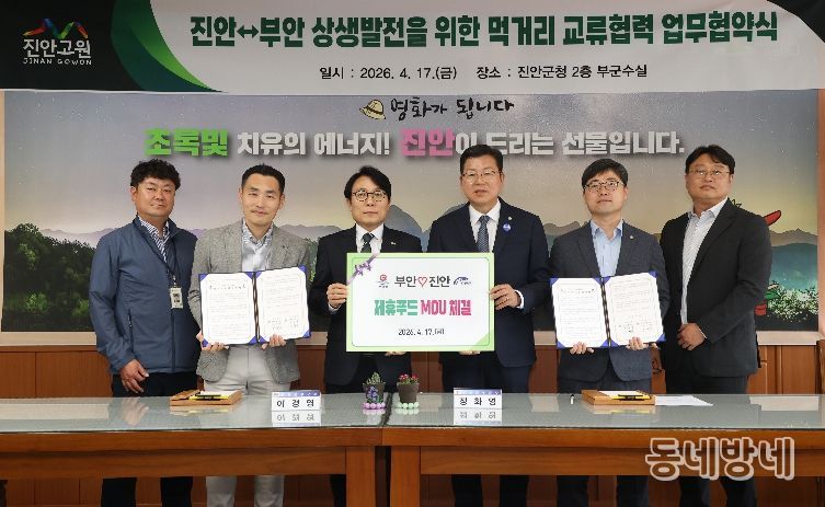 동네방네 김형규 기자 | 진안군은 17일 군청 부군수실에서 부안군과 지역 먹거리 상생발전 및 교류 협력 강화를 위한 업무협약(MOU)을 체결했다.