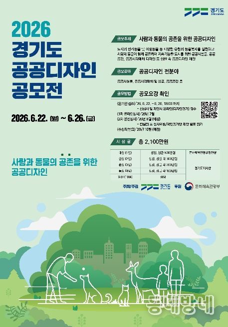 동네방네 김형규 기자 | 경기도가 ‘사람과 동물의 공존을 위한 공공디자인’이란 주제로 제20회 ‘2026년 경기도 공공디자인 공모전’을 6월 22일부터 26일까지 개최한다.