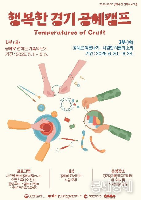 동네방네 김형규 기자 | 한국도자재단이 오는 5월 1일부터 경기공예창작지원센터(여주) 일원에서 체험·전시·이벤트를 결합한 참여형 프로그램 ‘2026 행복한 경기 공예 캠프’를 개최한다.