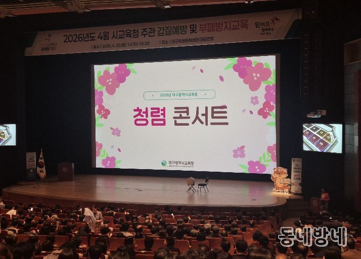 동네방네 김형규 기자 | 대구시교육청은 4월 20일 오후 2시 30분부터 대구학생문화센터 대공연장에서 교직원 및 관리자 등을 대상으로 ‘청렴콘서트’를 개최했다.