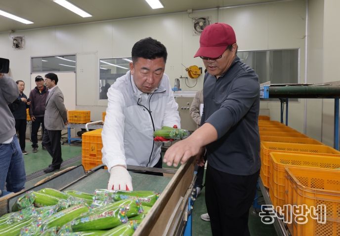 동네방네 김형규 기자 | 이범석 청주시장은 20일 흥덕구 오송읍에 위치한 청원생명 애호박 공동선별장을 방문해 공선 및 유통 현황을 점검하고 관계자와 지역 농민들을 격려했다.