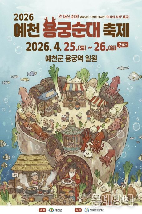 동네방네 김형규 기자 | 예천군의 대표 향토 먹거리 축제인 '2026 예천 용궁순대축제'가 오는 4월 25일부터 26일까지 이틀간 용궁역 일원에서 화려하게 펼쳐진다.