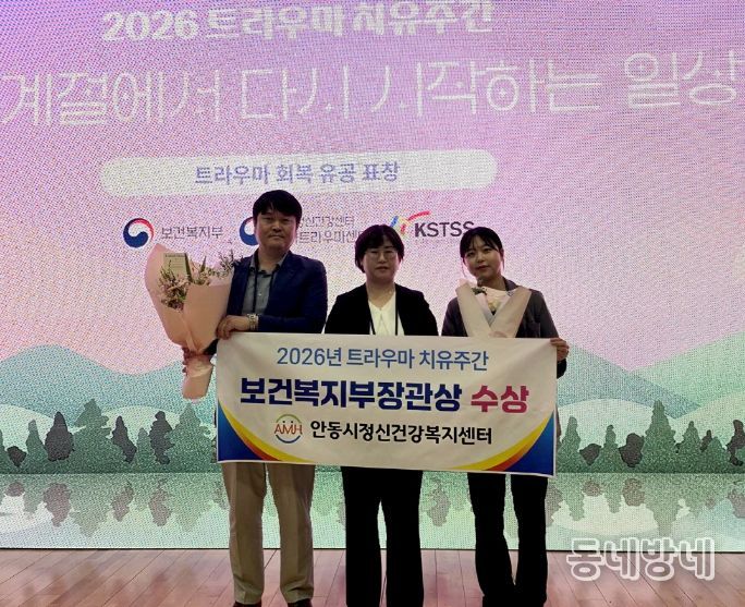 동네방네 김형규 기자 | 안동시정신건강복지센터는 20일 국립정신건강센터에서 열린 보건복지부 주최 ‘2026년 트라우마 치유주간’ 시상식에서, 산불 재난 경험자의 심리 회복을 위해 헌신한 공로를 인정받아 보건복지부 장관 표창을 수상했다고 밝혔다.