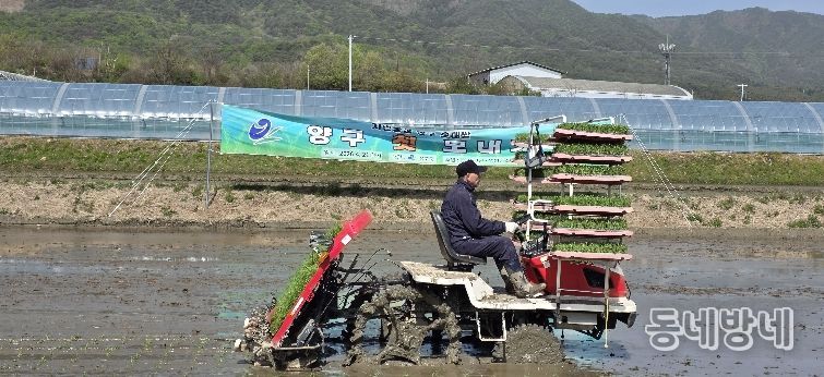 동네방네 김형규 기자 | 양구군이 21일 오전, 양구읍 학조리에서 올해 첫 모내기 행사를 진행하며 본격적인 영농철의 시작을 알렸다.