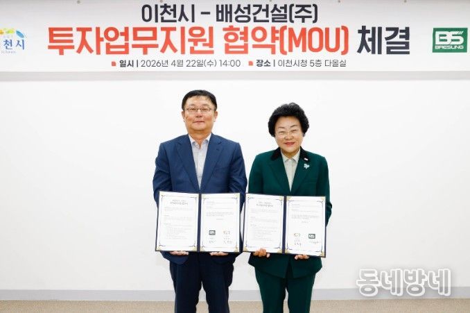 동네방네 김형규 기자 | 이천시가 22일 배성건설㈜와 203억 원 규모의 투자업무지원협약을 체결하고, 기업의 신규 공장 신설을 본격 지원한다.