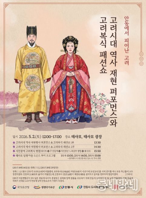 동네방네 김형규 기자 | 안동시 도시재생지원센터는 오는 5월 2일 12시부터 태사묘와 태사광장 일대에서 ‘2026년 생생 국가유산 사업’의 일환으로 진행되는 '안동에서 피어난 고려' 행사를 개최한다고 밝혔다.