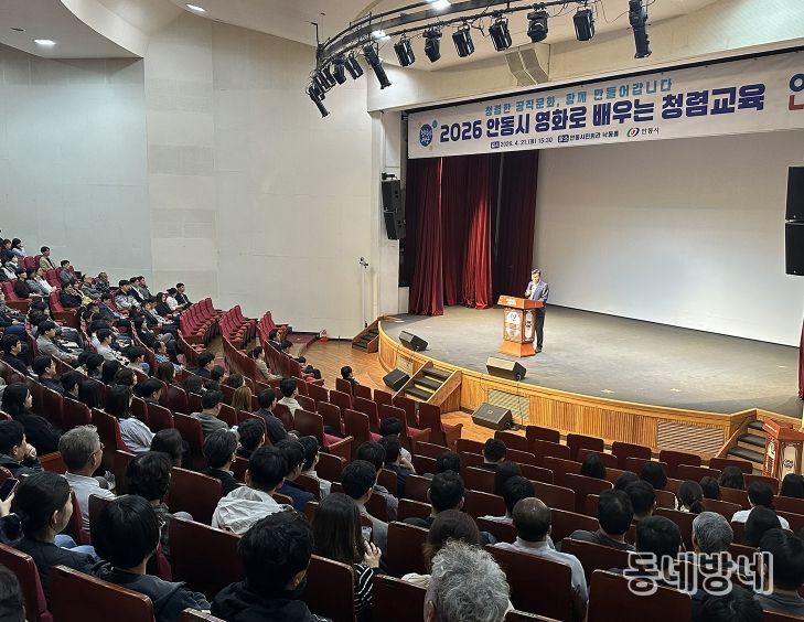 동네방네 김형규 기자 | 안동시는 4월 21일 안동시민회관 낙동홀에서 시 소속 공무원 및 공직유관단체 직원 380여 명이 참석한 가운데 ‘2026년 영화로 배우는 청렴교육’을 실시했다.