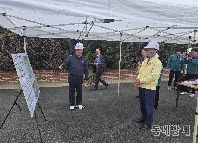 박 시장은 재난안전과 관계공무원 및 감리단, 시공사 등 외부전문가와 함께 대방동 일원의 “청널지구 우수저류시설 설치사업”현장을 방문했다.