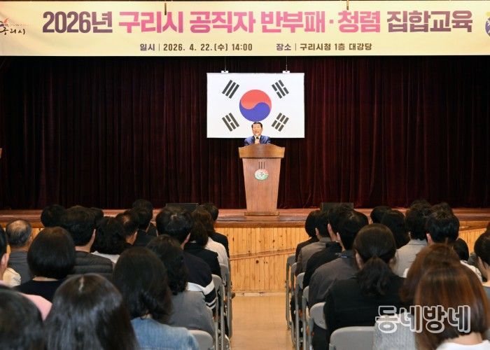 동네방네 김형규 기자 | 구리시는 지난 4월 22일 구리시청 대강당에서 5급 이상 간부 공무원과 신규·승진 공무원 등 170여 명을 대상으로 ‘2026년 구리시 공직자 반부패·청렴 교육’을 실시했다고 밝혔다.