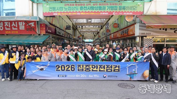 동네방네 김형규 기자 | 춘천시와 춘천소방서, 한국전기안전공사, 강원도시가스 등 관계기관이 23일 중앙시장 일원에서 ‘2026년 집중안전점검 및 안전점검의 날’ 합동 캠페인을 실시했다.
