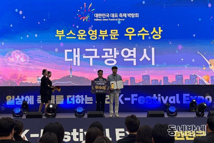 동네방네 김형규 기자 | 대구문화예술진흥원 문화예술본부는 지난 4월 17일~19일, 수원컨벤션센터에서 열린 제6회 대한민국대표축제엑스포에 대구 지역 대표 축제 브랜드 ‘판타지아대구페스타’ 홍보로 부스운영부문 우수성을 인정받아 ‘베스트 축제 어워드 부스운영 부문 우수상’을 수상했다.