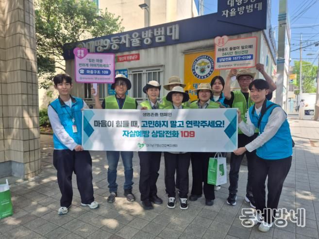 동네방네 김형규 기자 | 대구 남구보건소(남구정신건강복지센터)는 지난 4월 15일 자살 고위험 기간 집중 관리를 위하여 대명9동 일대를 중심으로 대명9동 자율방범대(생명지킴이)와 협력하여 생명존중 가두캠페인을 펼쳤다.