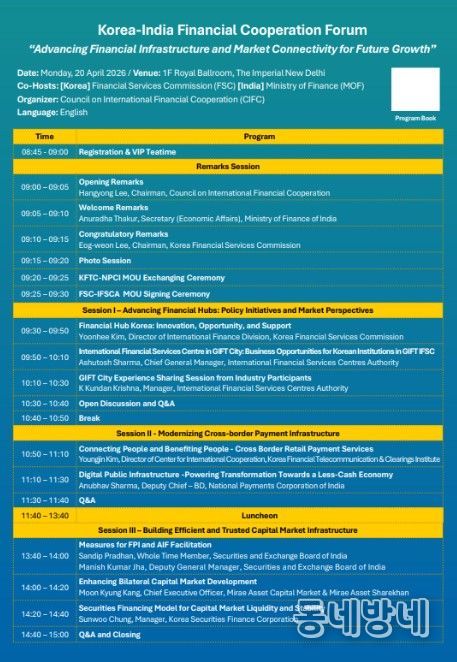 이 위원장은 4월 20일 뉴델리에서 최초로 개최된 한-인도 금융협력포럼(주최: 해외금융협력협의회, 후원: 금융위원회)에 참석했다. 이 위원장은 축사를 통해 “금융이 한국의 압축 성장을 이끈 것처럼, 금융이 인도의 새로운 도약을 위한 엔진이 될 것”이라며 양국간 금융협력의 중요성을 강조했다. 이번 포럼은 미래 성장을 위한 금융인프라 및 시장 연계성 강화(Advancing Financial Infrastructure and Market Connectivity for Future Growth)”라는 대주제 아래, ▲국경 간 결제 인프라 현대화, ▲자본시장 인프라 구축, ▲금융중심지 발전이라는 세 개의 세션으로 진행됐다.