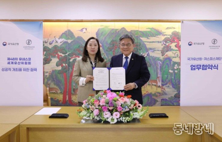 동네방네 김형규 기자 | 국가유산청은 저스피스재단과 4월 24일 오후 2시 국립고궁박물관(서울 종로구)에서 제48차 유네스코 세계유산위원회 회의(48th Session of the World Heritage Committee)의 성공적 개최를 위한 업무협약을 체결했다.