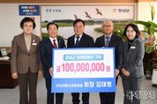 동네방네 김형규 기자 | 창녕군 출신의‘기부 천사’(주)리베라관광개발 김태명 회장이 올해도 변함없이 어려운 장애인을 위해 써달라며 5일 성낙인 창녕군수를 찾아 1억 원을 기탁했다. 창녕군은 김태명 회장이 (사)경남지체장애인협회 창녕군지회(김희정 회장)에 지속적인 관심과 꾸준한 기부를 이어오고 있다고 밝혔다. 김태명 회장은 25년 넘게 도내 장애인과 독거노인, 취약계층을 직접 찾아가며 꾸준한 나눔 활동을 이어왔다. 도내 18개 시·군을 돌며 경로 위안 행사, 장학금 전달, 사랑의 쌀·난방유 후원 등 맞춤형 사회공헌 활동을 지속하며 지금까지 25년간 60억 원이 넘는 금액을 지역사회에 기부한 것으로 알려졌다. 이러한 공로를 인정받아 올해 3월 제59회 납세자의 날에는 대한민국 정부로부터 산업포장을 수훈하며 성실한 납세와 사회공헌 기여로 모범 기업인의 면모를 보였다. 또한 제42회 경남도민의 날을 맞아 제1회 자랑스러운 경남인상(사회공헌 부문)을 수상하는 등 지역 사회 발전에 기여한 공로를 널리 인정받고 있다. 성낙인 창녕군수는“장애인을 향한 지속적인 관심과 따뜻한 나눔에 깊은 감동을 받았다