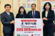 동네방네 김형규 기자 | (재)천안시복지재단은 5일 재주식품이 취약계층을 위한 360만 원 상당의 별난맛김 200개를 후원했다고 밝혔다. 별난맛김은 복지기관과 취약계층 가구에 전달될 예정이다. 한창열 재주식품 대표는 “작은 나눔이지만 지역의 어려운 이웃에게 따뜻한 힘이 되길 바라는 마음으로 후원에 동참했다”며 “앞으로도 지역사회와 함께 성장하는 기업이 될 것”이라고 말했다. 이운형 천안시복지재단 이사장은 “생필품과 식품 후원은 취약계층에게 가장 실질적인 도움이 된다”며 “나눔에 동참해주신 재주식품에 감사드리며, 다양한 기업과 함께 촘촘한 복지안전망을 만들기 위해 노력할 것”이라고 말했다.