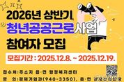 동네방네 김형규 기자 | 거창군은 2026년 상반기 청년 공공근로사업 참여자를 12월 8일부터 19일까지 모집한다. 청년 공공근로사업은 구직 중인 청년들에게 한시적인 일자리를 제공해 생활 안정과 취업 역량을 돕는 공공 일자리 사업이다. 신청 자격은 만18~34세 이하 관내 청년으로, 본인과 가족 합산 재산이 3억 원 이하이며 중위소득 60% 이하일 경우 신청할 수 있다. 모집인원은 36명이며, 신청은 주민등록상 주소지 읍면 행정복지센터에서 방문 접수로 진행된다. 자세한 사항은 거창군청 누리집 ‘입법/공고/고시’란에서 확인할 수 있다. 선발된 참여자는 각종 행정업무 보조 등 다양한 공공분야에서 근무하게 되는데, 참여 청년들은 현장에서 실무 경험을 쌓고 직무 역량을 강화할 수 있을 것으로 기대된다. 한편, 2026년 상반기 일반 공공근로사업과 지역공동체일자리사업은 1월 중에 별도로 참여자를 모집할 예정이며, 이를 통해 다양한 계층의 군민들에게 일자리 참여 기회가 제공될 예정이다.