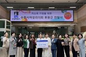 동네방네 김형규 기자 | 수원시여성리더회가 16일 수원시청 본관 1층에서 저소득가정을 위한 후원금 300만 원을 수원시에 전달했다. 후원금은 형편이 어려운 가정에 지원할 예정이다. 전달식에는 김은주 수원시 여성가족국장, 김수민 수원시여성리더회 총회장 등이 참석했다. 김수민 총회장은 “우리 여성리더회 임원진과 회원들의 따뜻한 마음을 모았다”며 “형편이 어려운 가정에 그 마음이 잘 전달되길 바란다”고 말했다. 수원시여성리더회는 수원시 양성평등기금 사업으로 운영되는 ‘수원시 여성지도자대학’ 수료생들로 구성된 단체다. 여성의 권익 증진과 복지 향상, 지역사회 발전을 목표로 2004년 12월 출범했다. 수료생 1240명이 활동 중이며, 매년 저소득가정 후원금과 물품 기부, 한부모가정 지원, 지역 복지시설 봉사활동 등 다양한 사회공헌 활동을 하고 있다.
