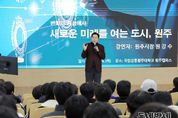 동네방네 김형규 기자 | 원강수 원주시장은 지난 4일 국립강릉원주대학교 원주캠퍼스에서 강원원주산학융합지구 소속 학부생 160여 명을 대상으로 ‘변화의 중심에서 새로운 미래를 여는 도시, 원주’라는 주제로 특별 강연을 진행했다. 이번 특강은 미래 첨단산업을 중심으로 변화하는 원주의 산업 생태계를 소개하고, 지역 청년들과 직접 소통하기 위해 마련됐다. 정보통신공학과, 멀티미디어공학과, 자동차공학과, 의료기기융복합과 학생들을 대상으로 전공과 연계된 산업 현황과 기술 흐름, 향후 원주시의 발전 방향 등을 폭넓게 제공했다. 원강수 시장은 강연에서 미래 첨단산업이 서로 연계·확장되면서 원주가 융합형 산업도시로 자리매김하고 있다고 강조했다. 특히 AI 융합 산업, 첨단의료복합단지 조성, 반도체 산업 생태계 구축, 미래 모빌리티 산업 육성, 드론 산업 기반 조성 등 주요 사업을 학생들의 전공 분야와 연결해 설명함으로써 지역인재들이 자신의 진로와 미래를 구체적으로 그려볼 수 있도록 도왔다. 앞으로도 원주시는 대학 및 산학융합원과 협력 방안을 적극 모색하고, 미래 전략사업을 차질 없이 추진해 청년들이 지역에서 성장할 수 있는 환
