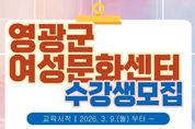 동네방네 김형규 기자 | 영광군 여성문화센터는 '2026년 상반기 여성문화센터 프로그램' 수강생을 모집한다고 밝혔다. 이번 상반기 프로그램은 최근 완료된 여성문화센터 리모델링 이후 처음 운영되는 과정으로, 한층 더 쾌적해진 교육환경 속에서 다양한 배움의 기회를 제공할 예정이다. 센터 프로그램실 전반을 새롭게 정비해 밝고 쾌적한 학습공간을 조성했으며, 수강생들이 편안하게 머물 수 있도록 휴식공간도 새롭게 마련했다. 2026년 상반기 프로그램은 여성의 자기개발과 역량 강화를 목표로 생활문화·건강·인문교양·직업능력 분야 등 총 15개 강좌를 구성했다. 주요 강좌로는 ▲한식조리사 ▲화훼장식기능사 ▲펫시터(반려견) 양성과정 ▲파크골프지도사2급 취업·창업 프로그램과 △드럼 △AI광고만들기 △바둑교실 △홈미싱(기초반) △도쿄의 식탁(일본요리) △태교요가 △스텝박스·바레다이어트 △런닝클래스 △셔플댄스 △수박카빙완전정복 △슬립업체형교정요가 취미·교양강좌를 개설했다. 수강 신청은 2026년 2월 23일부터 3월 6일까지 영광군에 주소를 두고 거주하는 여성이면 누구나 신청이 가능하고, 여성문화센터 직접 방