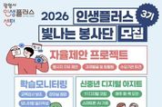동네방네 김형규 기자 | 광명시 인생플러스센터가 ‘2026년 인생플러스 빛나는 봉사단’ 제3기 봉사자 40명을 2월 23일부터 3월 11일까지 모집한다. ‘인생플러스 빛나는 봉사단’은 40~64세 광명시 중장년이 지닌 지식과 역량을 평생학습 자원으로 확장해 지역공동체에 필요한 변화를 함께 만들어가는 ‘재능활용 학습실천’ 자원봉사 활동이다. 지난 1‧2기 활동에는 총 50명의 봉사자가 참여해 ▲아동 학습보조 및 책놀이 ▲1:1 디지털 코칭 ‘신중년 디지털 아지트’ ▲어르신 아로마 향기테라피 ▲중장년 드론 조종 체험 등 다양한 활동을 펼쳤다. 이들은 총 413회, 누적 1천358시간에 걸친 봉사활동으로 지역사회에 활력을 불어넣었다는 평가를 받았다. 이번 3기 모집 분야는 크게 현장지원형(10명)과 프로젝트형(30명)으로 나뉜다. 현장지원형은 센터 프로그램 운영과 행사 안내를 돕는 ‘인생플러스 서포터즈’와 교육강사 보조 및 모니터링 일지를 작성하는 ‘학습 모니터링’으로 운영한다. 프로젝트형은 ‘신중년 디지털 아지트(1:1 코칭)’, ‘초등학생 책 낭독놀이’를 비롯해 봉사자가 직접 프로그램을