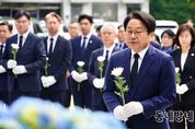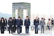동네방네 김형규 기자 | 경상남도는 제66주년 4·19혁명 기념일을 맞아 19일 오전 창원시 마산회원구 국립 3·15민주묘지를 찾아 민주주의 수호를 위해 헌신한 영령들의 숭고한 정신을 기렸다. 이날 참배에는 박완수 도지사를 비롯해 최학범 경남도의회 의장, 박종훈 경상남도교육감, 김상우 경남동부보훈지청장 및 4·19혁명 관련 단체 대표와 유가족 등이 참석해 민주 영웅들의 넋을 위로했다. 참배는 박완수 도지사가 참석자를 대표해 민주묘역 현충탑 앞에 헌화와 분향을 하는 것으로 시작됐다. 이어 참석자 전원은 함께 묵념하며 민주주의를 향한 4·19혁명의 의의를 되새기는 시간을 가졌다. 박 지사는 참배 후 방명록에 “정권독재와 부정선거에 항거했던 4·19 정신을 이어받아 경남 발전에 힘쓰겠습니다”라고 적으며 민주주의 가치 계승을 통한 도정 발전의 의지를 기록했다. 이어 박 지사는 행사에 참석한 4·19혁명 관련 단체장 및 유가족들과 인사를 나누며 감사의 뜻을 전했다. 박 지사는 격려의 자리에서 “오늘날 대한민국 민주주의의 뿌리인 4·19혁명의 정신은 우리 경남의 자부심”이라며 “유공자와 유족들의 희생이 헛되지