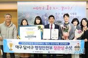 동네방네 김형규 기자 | 대구 달서구는 행정안전부가 주관한 ‘2025년 읍면동 복지·안전 서비스 개선 우수사례 경진대회’에서 행정안전부 장관상(장려상)을 수상했다. 달서구는 지난해에 이어 2년 연속 장관상을 수상하며 복지·안전 분야에서의 행정 역량을 다시 한번 인정받았으며, 이번 수상으로 특별교부세 1천만 원도 확보했다. 행정안전부는 1인 가구 증가와 사회적 고립 등 복지·안전 사각지대 해소를 목표로 '읍면동 스마트 복지안전 서비스 개선모델 개발 지원사업' 공모를 지난 1월 시행했고, 달서구를 포함한 66개 시군구에서 총 72개 사업이 선정됐다. 이번 우수사례 경진대회는 공모사업을 추진한 지자체를 대상으로 ▲ 복지 사각지대 발굴·지원 ▲ 읍면동 안전관리 두 분야로 나누어 평가가 진행됐으며, 달서구는 대구지역에서 유일하게 행정안전부 장관상을 수상하는 영예를 안았다. 달서구는 이곡2동의 '우리, 집(HouSE)으로 가자 – Health·Safety·Energy' 사업을 출품해 높은 평가를 받았다. 이 사업은 노후 원룸과 고시원에 거주하는 주거취약 중장년 1인가구를 대상으로 건강·정서·주거