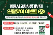 동네방네 김형규 기자 | 계룡시는 연말을 맞아 고향사랑기부제 활성화를 위한 ‘연말맞이 이벤트’를 28일까지 진행한다고 밝혔다. 시는 이번 이벤트를 통해 한 해 동안 계룡시 발전에 동참한 기부자들에게 감사의 마음을 전하고, 따뜻한 연말 기부 문화를 확산하겠다는 계획이다. 이벤트에 참여를 원하는 기부자는 이벤트 기간 중 계룡시에 10만원 이상 기부하고 답례품 주문을 완료하면 자동으로 응모된다. 기부는 ‘고향사랑e음’ 누리집을 통해 가능하다. 무작위 추첨을 통해 당첨자 총 260명에게 모바일상품권을 지급하며, 당첨자는 12월 29일 고향사랑e음에 등록된 연락처로 개별 문자가 발송될 예정이다. 한편, 고향사랑기부제는 주소지를 제외한 지방자치단체에 기부하면 10만 원까지 전액 세액공제, 10만 원 초과분은 16.5% 세액공제를 받을 수 있는 제도다. 또한 기부액의 30% 상당의 답례품도 제공된다. 계룡시 관계자는 "이번 연말맞이 이벤트를 통해 더 많은 분들이 고향사랑기부제에 관심을 갖고 참여해 주시길 바란다"며 "기부금은 계룡시의 주민 복리 증진과 지역경제 활성화를 위해