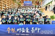 동네방네 김형규 기자 | 수원특례시 영통구 영통1동은 지역주민 130여명이 참석해 시민과 행정이 함께 어우러지는 ‘새빛만남’ 행사를 2025년 10월 21일 오전 10시, 영흥수목원에서 개최했다. 이번 행사는 이재준 수원특례시장을 중심으로 기성세대 (든든ON), 미래세대(청춘ON) 두 그룹을 구성한 토크 형식을 갖추고, 급변하는 AI 디지털 시대 속에서 지역공동체의 새로운 방향을 모색하여, 주민이 주도하는 마을공동체 문화를 확산하기 위한 내용을 담았다. 행사는 △개회식 △시정설명 △미래세대(영통1동 청명고등학생), 기성세대(영통1동 주민) 세대공감 대화 △ 시장님과의 소통 △수원시립합창단 공연 등으로 구성했다, 특히 청소년과 기성세대가 한자리에 모여 지역의 미래를 주제로 자유롭게 질문하고 의견을 나눴으며 ‘일상의 미래를 더하다’슬로건으로 이루어진 세대통합 대화가 큰 호응을 얻었다. 또한 행사장에는 영통1동의 전통을 담은 미래지향적인 캐릭터 ‘영토리’가 함께해 따뜻하고 활기찬 분위기를 연출했다. 이재준 수원특례시장은 “AI와 디지털 기술이 일상이 되는 시대일수록 이웃과 함께하는 공동체의 힘이 중요하다”며 “새빛만