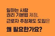 동네방네 김형규 기자 | 일하는 사람 권리 기본법 제정, 근로자 추정제도 도입은 왜 필요한가요? 제대로 알려드립니다. Q1. 일하는 사람 권리 기본법 제정, 근로자 추정제도 도입은 왜 하는건가요? AI 혁신, 플랫폼 경제 급성장 등 대전환의 시대에 새롭게 발생하는 모든 형태의 일하는 사람을 보호하기 위함입니다. Q2. 그럼 플랫폼종사자, 프리랜서 등은 모두 근로기준법상 근로자가 되는 건가요? 근로기준법상 근로자의 개념이 바뀌거나 확대되는 것은 아닙니다. Q3. 근로기준법상 근로자 개념이 확대되는 게 아니라면, 플랫폼종사자, 프리랜서 등은 보호되지 않는 것 아닌가요? 플랫폼종사자, 프리랜서도 일하는 사람 권리 기본법에 따라 보호될 수 있습니다. 또한, 근로자 추정제도를 통해 근로자임에도 입증하지 못해 근로자로 인정받지 못했던 사람들을 확실히 보호하면서, 가짜 3.3 감독을 통해 현장의 잘못된 관행을 바로 잡아나가겠습니다. Q4. 일하는 사람 권리 기본법은 선언적 규정이라고 하던데, 그럼 실효성이 없는 것 아닌가요? 기본법은 일하는 사람의 인권, 경제적 권리, 사회보장 권리 등을 규정하고 있으며, 경제
