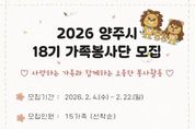 동네방네 김형규 기자 | 양주시자원봉사센터는 가족이 함께 참여하는 자원봉사 활동을 통해 건강한 가족문화를 조성하고 지역사회 나눔을 실천하기 위해 가족 단위로 함께 참여하는 ‘18기 가족봉사단’을 모집한다고 밝혔다. 모집대상은 양주시에 거주하는 2인 이상 가족으로 월 1회 정기적인 봉사활동 참여가 가능한 가족이며 총 15가족을 선착순 모집한다. 가족봉사단은 부모와 자녀가 함께 봉사활동에 참여하며 생활 속 나눔을 실천하는 참여형 프로그램으로 단순한 봉사활동을 넘어 가족 간 소통과 협력을 통해 유대감을 높이고 공동체 의식을 함양하는 데 목적이 있다. 제 18기 가족봉사단은 3월 발대식을 시작으로 ▲환경정화 활동 ▲계절별 나눔 활동 ▲재난안전체험 ▲시설봉사활동 ▲고구마경작활동 ▲시 축제 홍보부스 운영 등 매월 셋째 주 토요일마다 월·테마별 활동에 참여할 예정이다. 양주시자원봉사센터 이정주 센터장은 “가족이 함께 봉사활동에 참여하는 경험은 자녀에게 나눔의 가치를 자연스럽게 전달하고, 가족 간 유대감을 강화하는 계기가 된다.”며 “지역사회에 따뜻한 변화를 만들어갈 가족들의 많은 관심과 참여를 바란다.”고 전했