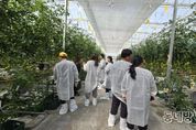 동네방네 김형규 기자 | 봉화군은 임대형 스마트팜에 입주한 스마트원예작목반원 9명이 지난 27일 관외지역의 농업회사법인에서 운영하는 대규모 스마트팜 벤치마킹을 했다고 밝혔다. 이번 벤치마킹은 올해 1월 봉성면 창평리에 준공된 임대형 스마트팜단지에 입주하여 정식한 서양계 완숙 토마토가 오는 4월 중순 본격적인 수확을 앞두고 대규모 스마트팜을 견학하여 선별, 물류 등 유통관리 등 운영 노하우를 배우기 위해 이뤄졌다. 작목반원들은 충남 논산시 광석면 소재 팜팜 스마트팜을 방문하여 관계자의 안내에 따라 유리온실, 복합환경제어시스템, 양액공급시스템, 에너지냉난방 시스템을 둘러보고 양광식 대표로부터 토마토 재배기술, 유통 노하우를 전해 듣는 시간을 가졌다. 2017년 11월 문을 연 농업회사법인 팜팜은 토마토 재배 및 유통 전문회사로서 10.7ha 규모의 스마트팜에서 방울토마토와 완숙토마토를 재배하여 신세계 푸드와 계약재배를 하고 있으며, 2024년 402억원의 매출을 올린 바 있다. 특히 이 스마트팜에서는 여름에는 냉방시스템을 이용하고 광량이 부족한 겨울에는 LED 보광등을 활용해 사계절 내내 토마토가 생산