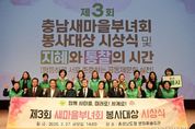 동네방네 김형규 기자 | 김태흠 충남도지사는 27일 도청 문예회관에서 열린 제3회 충남새마을부녀회 봉사대상 시상식에 참석, 지역사회를 위해 헌신해온 부녀회장들을 격려했다. 충남새마을회와 충남새마을부녀회가 주최·주관한 이번 행사에는 김 지사와 정광섭 도의회 부의장, 강승규 국회의원, 김정임 새마을부녀회 중앙연합회장, 박숙희 충남새마을부녀회장, 시군 새마을부녀회장 등 800여 명이 참석했다. 행사는 표창 수여, 우수사례 발표, 약속문 낭독, 기념촬영 등의 순으로 진행했다. 표창 수여에서 대상은 천영옥 논산시 채운면 새마을부녀회장이 받았다. 천 회장은 2015년부터 11년 동안 채운면 새마을부녀회장을 역임하며, 독거노인 480세대에 밑반찬을 제공하고, 부녀회원과 독거노인 간 1대 1 결연을 통해 청소와 빨래 봉사 등을 꾸준히 이어올 수 있도록 이끌어온 공로를 인정받으며 이번 영예를 안았다. 채운면 부녀회는 또 매년 120세대에 김장김치와 연탄을 지원하고, 11년 동안 헌옷을 수거·판매해 수익금 전액을 취약계층에 기부하는 등 공동체 봉사에 헌신해왔다. 우수상은 송미경 홍성군