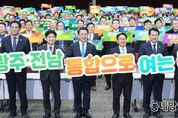 동네방네 김형규 기자 | 광주전남 행정통합을 주도할 민간협력기구가 닻을 올렸다. 광주·전남지역 각계 대표 500명이 320만 시도민의 뜻과 역량을 하나로 결집해 우리나라 최초 통합 광역지방정부 탄생에 앞장서겠다고 결의를 다졌다. 광주광역시와 전라남도는 16일 오후 3시 김대중컨벤션센터에서 ‘광주‧전남 행정통합 추진 범시도민 협의회’ 발대식을 열고, 대한민국 최초의 통합 광역지방정부 탄생을 위한 시도민 역량 결집에 나섰다. 협의회 발대식에는 강기정 광주시장과 김영록 전남지사를 비롯해 시·도교육감, 시·도의회 의원, 협의회 공동대표 및 위원 등 500여명이 참석했다. 이날 행사는 ▲공동대표 10명에 대한 위촉장 수여 ▲행정통합 추진경과 및 소통방안 ▲특별법안 내용 설명 ▲범시도민 결의문 낭독 ▲퍼포먼스 및 기념촬영 순으로 진행됐다. ‘광주·전남 행정통합 추진 범시도민 협의회’는 광주시와 전남도, 시·도교육청, 시·도의회, 시민사회단체, 경제·산업계, 학계·교육계, 노동계, 청년·여성·원로 대표 등 다양한 분야의 지역 인사 500명이 참여해 행정통합 공론화와 사회적 합의를 이끄는 역할을 맡는다. &nbs