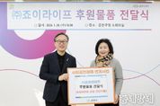 동네방네 김형규 기자 | 금천구는 ㈜죠이라이프가 지역 내 취약계층에게 4,000만 원 상당 건강식품을 후원했다고 밝혔다. 이와 관련 지난 20일 오전 금천구청 소회의실에서 후원물품 전달식이 진행됐다. 전달식에서는 유성훈 금천구청장과 정난희 ㈜죠이라이프 대표가 참석해 관내 취약계층 지원에 뜻을 모았다. 후원받은 건강식품은 일상적인 건강 관리에 어려움을 겪는 주민들의 건강한 생활 유지를 돕기 위해 관내 취약계층에게 전달될 예정이라고 구는 설명했다. ㈜죠이라이프는 금천구 관내에 위치한 화장품, 건강식품 전문 생산 기업이다. 특히 장애인 고용에 선도적인 역할을 하고 있는 장애인기업으로 사회적 가치 실현에 앞장서고 있다. 지난해에는 개청 30주년을 기념해 관내 취약계층에게 먹거리‧생활용품을 지원한 ‘훈훈한 별천지 겨울마켓’에 참여해 400만 원을 후원했다. 이어 올해에도 지역사회에 나눔을 이어가고 있다. 정난희 ㈜죠이라이프 대표는 “도움이 필요한 이웃들이 건강에 대한 부담을 덜고 일상을 이어가는 데 보탬이 되길 바란다”라고 전했다. 유성훈 금천구청장은 “따뜻한 마음을 전해주신 (주)