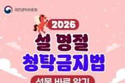 동네방네 김형규 기자 | ■ 2026년 설 명절 청탁금지법 선물 바로 알기 하나, 공직자에게 원활한 직무수행 또는 사교·의례 목적으로 제공되는 선물은 5만 원, 농축수산물 및 농축수산가공품 선물은 15만 원까지 가능합니다. 다만, 명절 기간*에 한정하여 농축수산물 및 농축수산가공품 선물은 30만 원까지 허용됩니다. *2026.1.24.(토)~2.22.(일) (30일간), 택배 등으로 발송 시에는 발송일자 기준 둘, 공직자의 직무와 직접적인 이해관계*가 있는 경우에는 가액 범위 내라 하더라도 원활한 직무수행, 사교·의례 목적으로 볼 수 없으므로 공직자에게 일체의 선물도 줄 수 없습니다. *인·허가신청 민원인, 입찰참여 등 유관기관, 인사·평가·감사 대상자 등과 담당 공직자 관계 셋, 농축수산물 선물에는 농산물, 축산물, 수산물뿐만 아니라 임산물도 포함됩니다. 농축수산가공품*은 농축수산물을 원료 또는 재료의 50%를 넘게 사용하여 가공한 제품만 해당합니다. *농축수산가공품 해당 여부는 소관부처인 농림축산식품부, 해양수산부에 문의 넷, 청탁금지법상 선물에 포함되는 상품권은 특정한 물품 또는 용역의 수량이