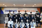동네방네 김형규 기자 | 강원인재원은 1월 21일 KT·G 상상마당 춘천스테이 나비홀에서 ‘2026년 강원특별자치도 미래인재 인증서 수여식’을 개최했다고 밝혔다. 강원특별자치도 미래인재 지원은 과학기술, 인문사회, 문화예술, 체육 분야에서 우수한 자질을 갖추고 향후 도를 빛낼 글로벌 인재를 발굴・지원하는 장학사업으로, 지난 2005년부터 21년간 247명을 선발하여 지원해 왔으며, 미래인재 장학생으로 선발되면 1인당 연 3백만 ~ 1천만 원까지 최대 7년간 지급된다. 올해 선발된 미래인재는 ▲과학기술 분야 여승민(고려대 2년), 이재윤(민족사관고 3년), 채은우(대구경북과기원 1년), 황준서(서울과고 1년) ▲인문사회 분야 김정은(원주금융회계고 3년) ▲문화예술 분야 김시언(예원학교 3년), 윤시연(선화예고 1년), 이선우(선화예고 3년), 장세혁(한예종 2년) ▲체육 분야 고하루(강원체고 3년), 권 율(원덕고 1년), 이서아(봉의고 3년), 이태건(강원체중 3년) 이상 4개 분야 총 13명이다. 이날 수여식에서는 지역인재 육성을 위해 NH농협은행 강원영업부(부장 김종구)에서 1천5백만 원, 한국