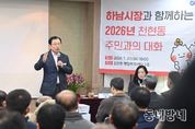 동네방네 김형규 기자 | 이현재 하남시장은 20일 감일동 행정복지센터에서 열린 ‘주민과의 대화’에서 “방아다리길 연결도로 개통과 연계한 버스 노선 개편 및 생활 SOC 확충을 통해 감일신도시 주민들의 정주 여건을 개선하겠다”라고 밝혔다. 방아다리길 연결도로는 하남시 감일동과 서울시 송파구 방이동을 잇는 구간으로, 오는 2026년 6월 최종 준공될 예정이다. 이현재 시장은 “도로 개통에 맞춰 올림픽공원 방향으로 버스 노선을 집중 조정함으로써 주민들의 교통 편의를 높이겠다”라고 설명했다. 아울러 학생들의 안전한 보행 환경 조성을 위한 교량 신설 사업도 속도를 낸다. 신우초등학교 앞 인도교 확장 공사는 학생들의 안전을 고려해 오는 4월 준공할 예정이며, 10단지에서 8단지 상가를 연결하는 벌말천 인도교는 1월 중 주민설명회를 거쳐 6월 준공 및 개방을 목표로 하고 있다. 이 시장은 지역 문화 인프라 구축의 핵심인 감일 박물관 건립 상황도 공유했다. 감일지구 출토 유물을 전시할 박물관은 이달 중 건축 공사에 착공하며, 총 152억 원의 사업비를 투입해 2027년 하반기 준공될 예정이다. 다만, 감일종합복지타운은 시의