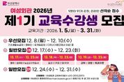 동네방네 김형규 기자 | 부산시 여성문화회관은 오는 내일(8일)부터 '2026년 제1기 문화교실' 수강생을 모집한다고 밝혔다. '여성문화회관 문화교실'은 우수한 강사진을 토대로 시민의 다양한 문화 욕구에 부합하는 배움의 장을 제공하는 평생교육 프로그램이다. 시민들에게 전문적인 능력개발과 삶의 질 향상을 위한 폭넓은 기회를 제공하고자 시 여성문화회관이 운영하고 있다. 2026년 제1기 문화교실은 내년 1월 2일부터 3월 28일까지 11주간 진행되며, 전통·어학·요리·예술·현대생활 5개 분야 97개 강좌에서 1,913명의 수강생을 모집할 예정이다. 이번 교육 과정에는 전통 분야를 비롯한 다양한 문화예술 강좌와 취·창업 등에 도움이 되는 자격증 강좌, 직장인을 위한 야간·주말 강좌가 운영될 예정이다. ▲문화예술 강좌로는 가야금, 기타, 꽃꽂이 등이 있으며 ▲자격증 강좌로는 제빵(베이킹), 컴퓨터 자격증 과정 등이 있다. 또한, ▲야간에 운영되는 필라테스․요가, 커피 바리스타 과정, 사진예술 등의 강좌 ▲주말 과정인 전통주·꽃차, 여행영어 과정 등도 만나볼 수 있다. 18세 이상