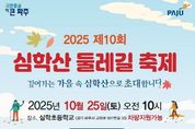 동네방네 김형규 기자 | 파주시 교하동 주민자치회는 오는 25일 10시, 심학초등학교에서 ‘2025년 제10회 심학산 둘레길 축제’를 개최한다고 밝혔다. ‘깊어가는 가을 속 심학산으로 초대합니다’를 주제로 열리는 이번 행사는 가족이 함께 걷고 즐기는 가을맞이 지역 축제로, 심학산의 아름다운 둘레길을 배경으로 다양한 프로그램이 진행될 예정이다. 이날 축제는 오전 10시 식전 공연을 시작으로, 11시 개막식이 진행된다. 축제 현장에는 체험공간, 먹거리 장터, 농산물 직거래 장터, 풍자화(캐리커처) 무료 체험(선착순 30명) 등 풍성한 볼거리와 즐길 거리가 마련된다. 또한 경품 추첨과 노래자랑 등 참여형 행사도 진행되며, 75인치 발광다이오드(LED) 텔레비전 등 푸짐한 경품이 준비돼 있다. 특히 올해 축제에는 파주시 홍보대사이자 초대가수 김대훈이 출연해 신나는 무대를 선보일 예정이다. 박용호 교하동 주민자치회장은 “올해로 10회를 맞은 심학산 둘레길 축제는 주민이 주도하는 교하동의 대표 축제로 자리 잡았다”라며 “마을회관에서 행사장까지 차량 지원을 제공하는 등 많은 주민들이 불편 없이 참여할 수 있도록