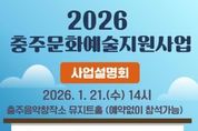 동네방네 김형규 기자 | (재)충주문화관광재단은 충주시 예술인 및 예술단체의 창작활동 기반을 마련하여 문화예술 생태계를 조성하고자 1월 19일부터‘2026 충주문화예술지원사업’공모를 진행하고 있다고 밝혔다. 공고 및 접수 기간은 2월 20일 오후 5시까지이며, 재단 홈페이지를 통해 공모요강과 신청서를 확인한 후 이메일로 접수하면 된다. 최종 선정은 전문가 심의를 거쳐 3월 중에 발표될 예정이다. 이번 공모는 ▲문학 ▲시각 ▲공연/다원 분야로 개인 및 단체부문으로 진행된다. 지원 대상은 공고일 이전 최소 6개월 이상 충주시에 주소지를 두고 있으며 충주시에서 문화예술사업을 운영할 역량을 갖춘 예술인 및 단체이다. 올해 공모에 대한 이해를 돕기 위해 1월 21일 오후 2시 충주음악창작소 뮤지트홀에서 사업설명회를 개최한다. 재단 관계자는 “지역 예술인의 창작 여건 개선과 역량 강화를 지원하고 시민들에게 수준 높은 문화예술 향유 기회를 제공하기 위해 지속적으로 노력하겠다.”라고 전했다. 한편 재단은 올해 출향예술인 예술활동 지원분야를 신설하여 타지에서 활동 중인 충주 출신 예술인의