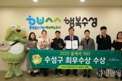 동네방네 김형규 기자 | 대구 수성구는 지난 27일‘2025 올해의 SNS’ 기초지자체(자치구) 유튜브 부문에서 최우수상을 수상했다고 밝혔다. 지난해에 이어 두 번째 수상으로, 수성구의 온라인 소통 역량이 대외적으로 다시 한 번 인정받았다. 올해로 11회째를 맞은‘올해의 SNS 어워드’는 (사)한국소셜콘텐츠진흥협회가 주최·주관하고 과학기술정보통신부 등이 후원하는 행사로, 사회관계망 서비스(SNS) 매체별 활용 현황을 심사하여 우수한 소셜미디어를 운영하는 기업과 기관을 선정한다. 심사 기준은 활동 및 영향력 지수에 따른 정량평가와 콘텐츠 질, 스토리텔링, 소통성 등 전문가 평가를 종합해 최종 수상자를 결정한다. 수성구는 올해 인플루언서 협업 콘텐츠, 영화 패러디 영상, ‘소다팝 댄스 챌린지’ 영상 등 젊은 층의 관심을 끌 수 있는 기획물이 호평을 받았다. 또한 수성구 캐릭터 ‘뚜비’를 활용한 챌린지와 트렌디한 쇼츠 영상 제작으로 채널의 차별성을 높였다. 단순 구정 정보 전달에서 벗어나 재미 요소를 가미해 지역 소식을 자연스럽게 홍보한 점도 높은 평가를 받았다. 수성구 공식 유