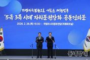 동네방네 김형규 기자 | 대한민국시장·군수·구청장협의회는 2월 26일 광주 국립아시아문화전당에서 민선8기 4차년도 제3차 공동회장단회의를 개최하고,『5극3특 시대 자치분권 강화 공동건의문』을 발표했다. 협의회 조재구 대표회장은 건의문을 통해“수도권 집중 극복과 지역 주도의 새로운 국가발전전략인 5극3특 균형성장 정책의 성패는 기초지방정부의 권한과 재정 확충에 달려 있다”고 했다. 이를 위해 그 초석이 되는 전남·광주 행정통합이 자치분권의 새로운 이정표로서, 지역성장과 경쟁력 강화의 모범모델로 자리매김 할 것을 강조하면서,“더 강화된 지방분권, 더 확대된 지방재정”을 위한 제도개선을 정부와 국회에 강력히 건의했다. 주요 건의내용은 ▲권한이양을 통한 기초지방정부 지방분권 강화 ▲지방교부세 확충과 보통교부세 자치구 직접 교부를 통한 지방재정의 확충 ▲국가균형성장 계획 및 정책 수립 과정에서 기초지방정부 협의 의무화 등이다. 한편, 협의회에 따르면 민선8기 후반기 대표적인 성과로 중앙지방협력회의에 기초지방정부 참여가 확대되어, 기존 대표회장 1명에서 시장․군수․구청장별 1명씩, 총 3명으로 확대될 예정