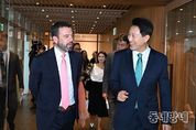 동네방네 김형규 기자 | 오세훈 서울시장은 26일 오전 11시 서울시청 집무실에서 카를로스 페르난도 갈란(Carlos Fernando Galan) 콜롬비아 보고타시장을 만나 양 도시 간 협력을 강화할 방안에 대해 논의했다. 서울시와 보고타시는 1982년 친선도시 결연 이후 지난 40여 년간 우호적 관계를 맺어 왔으며, 특히 BRT(Bus Rapid Transit)‧교통카드 시스템 등 교통 분야 교류를 활발히 이어오고 있다. 면담에서 보고타시의 지하철 건설 계획을 청취한 오 시장은 “‘서울지하철’의 안전과 편의성이 세계적으로 인정받는데 가장 크게 기여한 것이 바로 ‘스크린도어’”라며 “인명사고 위험을 완전히 차단해 주고, 냉‧난방 효율과 지하 공기질 개선에도 효과적인 스크린도어를 설치한다면 시민 안전과 편의를 획기적으로 올릴 수 있을 것”이라고 말했다. 또 ‘교통뿐 아니라 앞으로 더 다양한 분야에서 협력해 나가길 기대한다’는 카를로스 시장의 제안에 오 시장은 “작년에 이어 올해도 ‘스마트라이프위크 2025(Smart Life Week 2025)’에 관심 갖고 참석해 주어서 감사하고, 이런 교류를 시작으로 스마트시