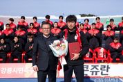 동네방네 김형규 기자 | FC강릉(재단법인 강릉시민축구단)은 2026시즌을 앞두고 직무대행 체제였던 감독직위에 임다한 감독을 임명하여, 새 시즌을 향한 팀 운영 체제를 완성했다. 구단은 2026년 1월 30일, 임다한 감독 임명식을 개최했다. 이날 FC강릉 이사장인 김홍규 강릉시장이 직접 임명장을 수여하며, 감독 직무대행 체제로 운영되던 팀이 정식 감독 체제로 전환했음을 대외적으로 분명히 했다. 임다한 감독의 선임을 계기로 FC강릉은 2026시즌을 향한 지휘 체계를 명확히 정립하고, 전지훈련을 포함한 시즌 준비에 속도감 있게 돌입할 계획이다. 임명식 직후에는 2026시즌을 대비해 구성이 완료된 선수단(40명: 코치8, 선수단32)의 첫 공식 행사로 단체사진 촬영이 이어졌다. 이번 행사는 완성된 선수단의 현재 모습을 대중에게 처음 선보이는 자리로, 2026시즌 FC강릉의 출발을 상징하는 장면이 될 전망이다. 또한 김홍규 이사장은 전지훈련을 앞둔 선수단에게 격려와 응원의 메시지를 전하며 선전을 당부했고, 선수단 역시 새 시즌을 향한 각오와 결의를 다지는 시간을 가졌다. FC강릉 최윤순 단장
