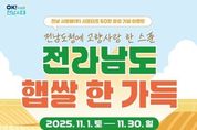 동네방네 김형규 기자 | 전라남도는 지역 상생 발전을 위해 도입한 ‘전남 사랑애(愛) 서포터즈’ 60만 명 돌파를 기념해 11월 한 달간 전남산 햅쌀을 증정하는 고향사랑기부제 감사 이벤트를 추진한다고 밝혔다. 이벤트는 고향에 사랑을 나누고, 지역 농가를 응원하는 분위기 확산을 위해 마련됐다. 11월 1일부터 30일까지 전남도청에 10만 원 이상을 기부하고 답례품 후기를 작성한 선착순 1천 명에게 전남 햅쌀 4kg을 추가로 증정한다. 이벤트 참여는 전남도청에 10만 원 이상 기부한 후, 고향사랑e음에서 답례품을 주문·수령한 다음 후기를 작성하면 자동으로 신청된다. 자세한 이벤트 관련 내용은 고향사랑e음(ilovegohyang.go.kr) 누리집에서 확인할 수 있다. 강경문 전남도 고향사랑과장은 “전남 사랑애 서포터즈 60만 명은 전남의 한 가족이고, 고향사랑기부제의 든든한 동반자”라며 “고향을 향한 마음이 모여 지역을 살리고, 그 따뜻함이 다시 국민에게 돌아가는 나눔의 선순환을 계속 잇겠다”고 말했다. 고향사랑기부제는 개인이 자신의 주소지를 제외한 지방자치단체에 연간 2천만 원까지 기부할 수 있는 제